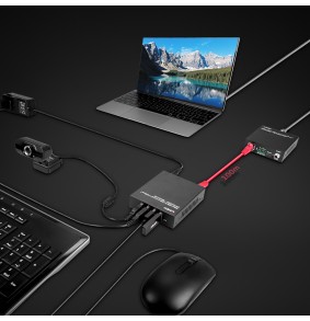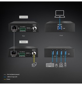 USB 3.2 Gen 1 extenderis palaiko 5Gbps pralaidumą maksimaliai 100m atstumu naudojant Cat.6A kabelį. Jame yra tokios funkcijos kaip Power over Cable, RS232 valdymas ir keli USB Type A išėjimai.