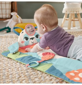 Fisher-Price Planet Friends Roly-Poly Panda Kūdikių Žaidimų Kilimėlis yra tinkamas kūdikiams nuo 0 iki 18 mėnesių ir turi integruotą veidrodį. Jis apima du žaislus ir pagamintas iš spalvoto plastiko, kurio matmenys yra 711,2 mm tiek gylio, tiek pločio.