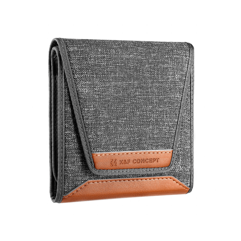 K&F Concept 841D filtrų dėklas turi tris atskiras kišenes filtrams, kurių maksimalus skersmuo yra 62 mm, ir papildomą išorinę kišenę mažiems priedams. Pagamintas iš vandeniui atsparios medžiagos, jis turi lipnų užsegimą, leidžiantį lengvai pasiekti filtrus.