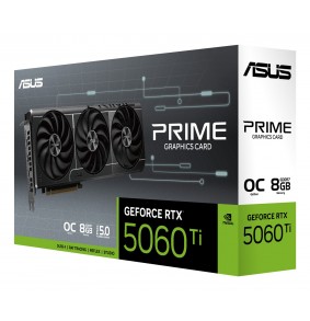 ASUS Prime GeForce RTX 5060 Ti turi 4608 CUDA branduolių ir 8 GB GDDR7 atminties. Ji palaiko maksimalų 7680 x 4320 pikselių raišką ir turi tris DisplayPort jungtis bei vieną HDMI jungtį.