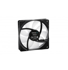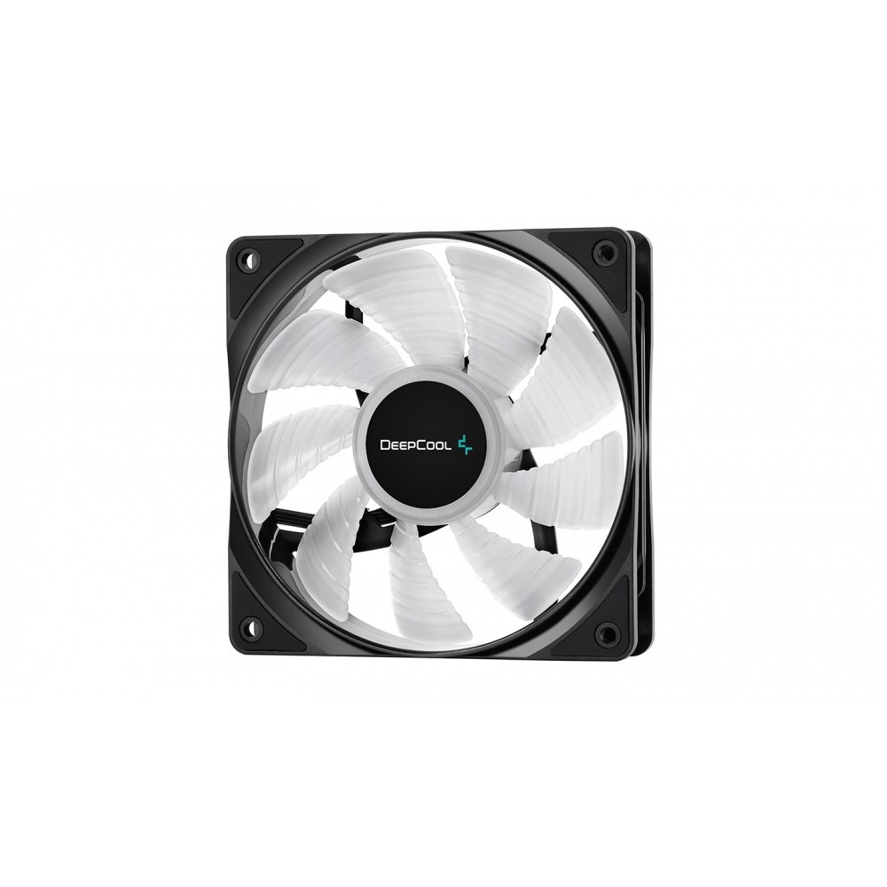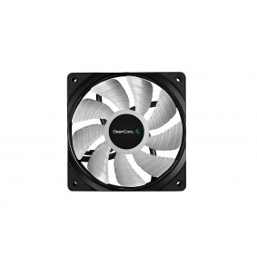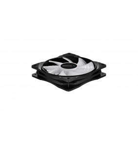 12 cm daugiaspalvis LED ventiliatorius su juodu ir baltu dizainu, užtikrinantis tylų veikimą ir efektyvų oro srautą aušinimui.