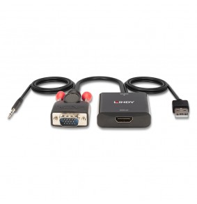 Prijungia vieną VGA įrenginį ir garsą prie vieno HDMI ekrano su maksimaliia 1920x1080@60Hz raiška. Maitinamas per USB prievadą, palaiko stereo garsą ir turi kompaktišką dizainą.