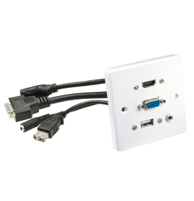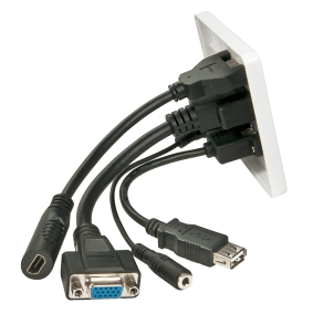 Sieninis pultas turi HDMI, VGA, USB ir 3.5mm stereo jungtis priekyje ir gale. Jo matmenys yra 86 x 86mm, pagamintas iš baltos ABS medžiagos, reikalaujantis mažiausiai 45mm gylio montavimo dėžutės.