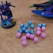 Pasiruoškite veiksmui! Šis 20 14 mm dydžio kauliukų rinkinys yra tolygiai suskirstytas pagal spalvas. Įkvėptas kryžiukų, jų elegantiškas taškų dizainas sujungia mėlyną ir rožinį foną su baltais piešiniais, kad atrodytų dinamiškai. Dėl kompaktiško dydžio jie puikiai telpa rankoje; užapvalintais kraštais šie kauliukai užtikrina sklandų metimą ir puikiai tinka įvairiuose žaidimuose. Žaiskite ir laimėkite bet kada ir bet kur! Rinkinį sudaro 20 D6 kauliukų, suskirstytų į grupes po 10 kauliukų, išsiskiriančių fono spalvomis.
